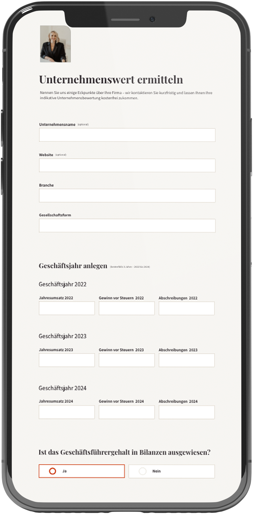 Gern ermitteln wir schon vor unserem ersten Gesprächstermin Ihren indikativen Unternehmenswert. Nutzen Sie dazu unser Formular.
